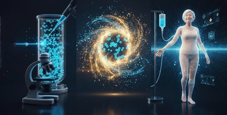 TPE and young exosomes create a -youthful environment for the engraftment and optimal functioning of DPC. DPC migrate to the most problematic sites, giving rise to new young tissue-specific stem cells that gradually replace the old specialized cells. Today, this represents the most promising approach to RLE.